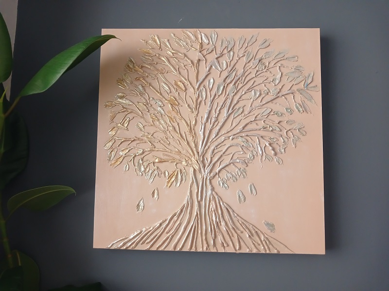 Alçı Dokulu Hayat Ağacı Tablo, MDF tual tablo üzerine alçı ile doku verilmiştir. Alçımıza tutkal katılarak sağlamlaştırılmıştır. Tamamen el yapımıdır ve el işçiliğiyle boyanmıştır. Akrilik boyalar ve altın varak ile geçişler yapılmıştır. Ölçüsü 52*52 cm'dir. Oturduğunuz yerin keyfini maximuma çıkarmak için evinize veya ofisinize modern ve şık zarafet eklemek için bu ürünü sizlerle buluşturduk.